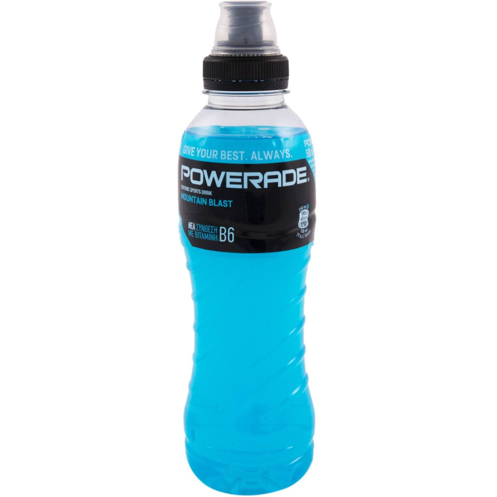 ΑΘΛΗΤΙΚΟ ΙΣΟΤΟΝΙΚΟ ΠΟΤΟ POWERADE . Συστατικά: Νερό, δεξτρόζη, φρουκτόζη, ρυθμιστής οξύτητας: ασκορβικό οξύ, μεταλλικά άλατα (χλωριούχο νάτριο, κιτρικό τρικάλιο, χλωριούχο μαγνήσιο, χλωριούχο ασβέστιο, φωσφορικό τρικάλιο), αρωματικές ύλες, σταθεροποιητές: Ε414 Ε445, γλυκαντικές ουσίες: σουκραλόζη και ακεσουλφάμη Κ, χρωστική E160a. Να φυλάσσεται σε μέρος σκιερό και δροσερό. Ανάλωση κατά προτίμηση πριν το τέλος που αναγράφεται στη συσκευασία.ΔΙΑΝΕΜΕΤΑΙ ΑΠΟ ΤΗ CAPITAL GROUP MON IKE 2310-681238