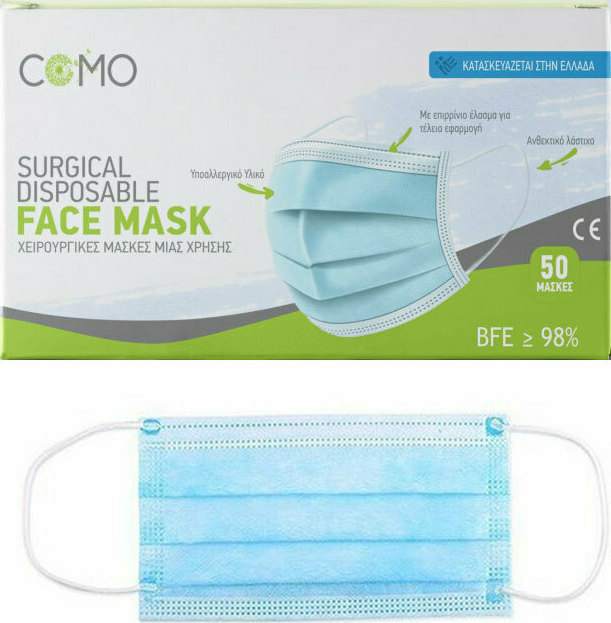 Como Χειρουργική Μάσκα μιας Χρήσης 3ply Type II BFE >98% Γαλάζιο 50τμχ