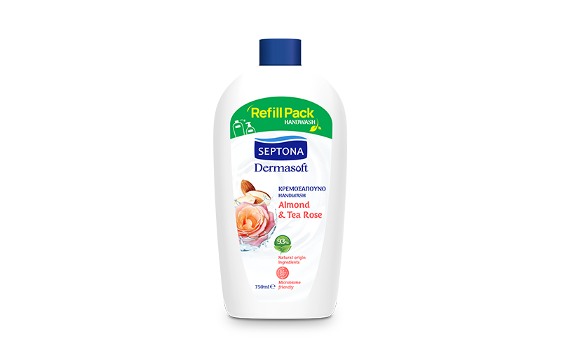 SEPTONA DERMASOFT ΚΡΕΜΟΣΑΠΟΥΝΟ REFILL PACK 750ml ALMOND & TEA ROSE *